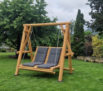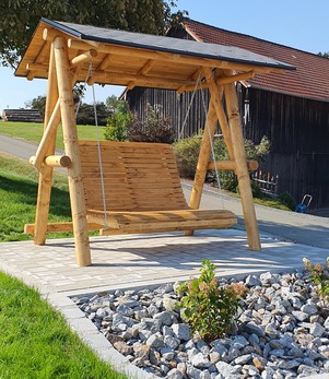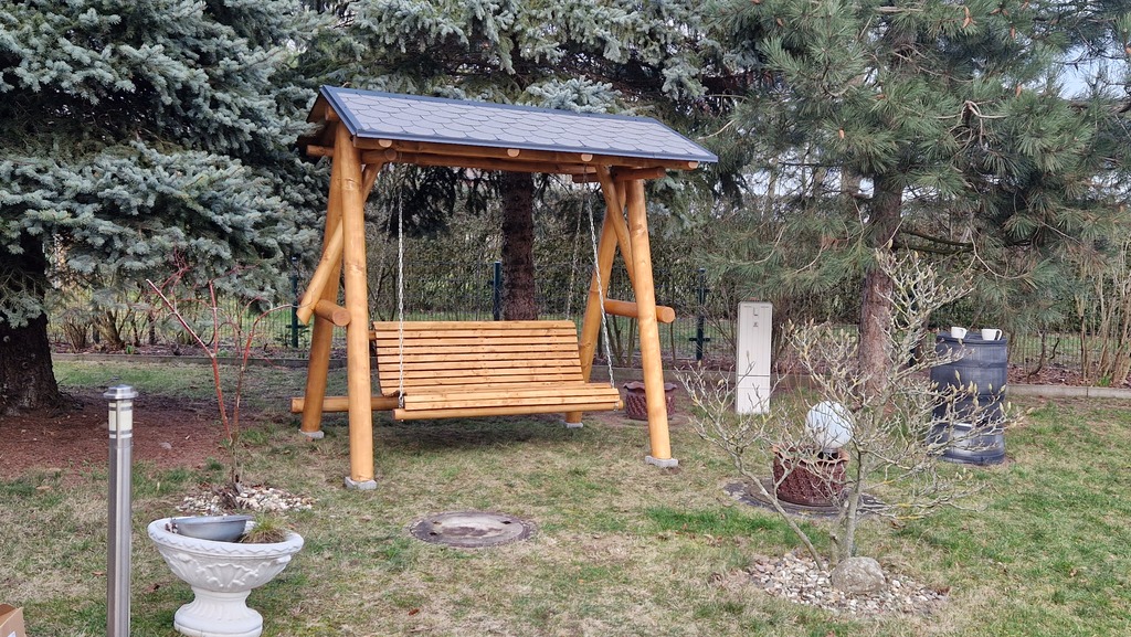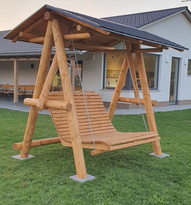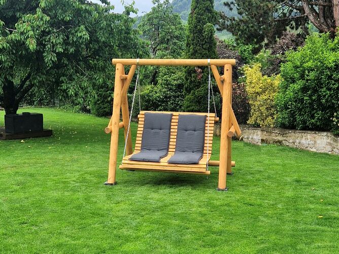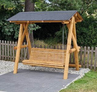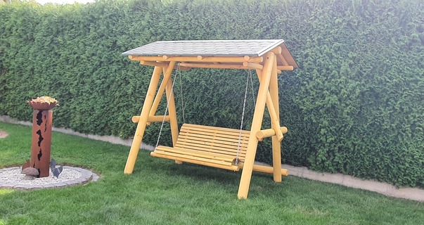 Unsere Hollywoodschaukel aus massiver nordischer Fichte ist robust, solide, sehr stabil und mit speziellem Öl für Holz behandelt.